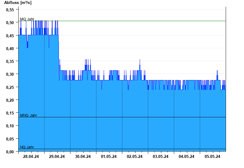 - Mittlerer Niedrigwasserabfluss MNQ 0,133 m³/s