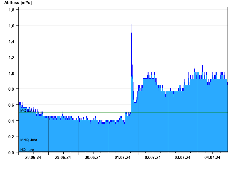 - Mittlerer Niedrigwasserabfluss MNQ 0,133 m³/s