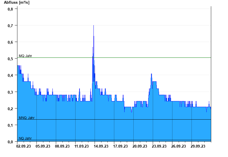 - Mittlerer Niedrigwasserabfluss MNQ 0,133 m³/s