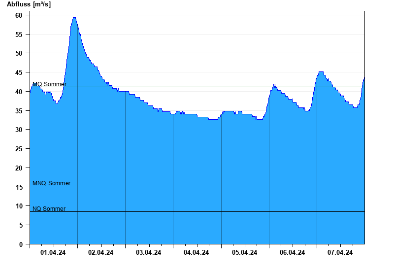 - Mittlerer Niedrigwasserabfluss MNQ 15,2 m³/s