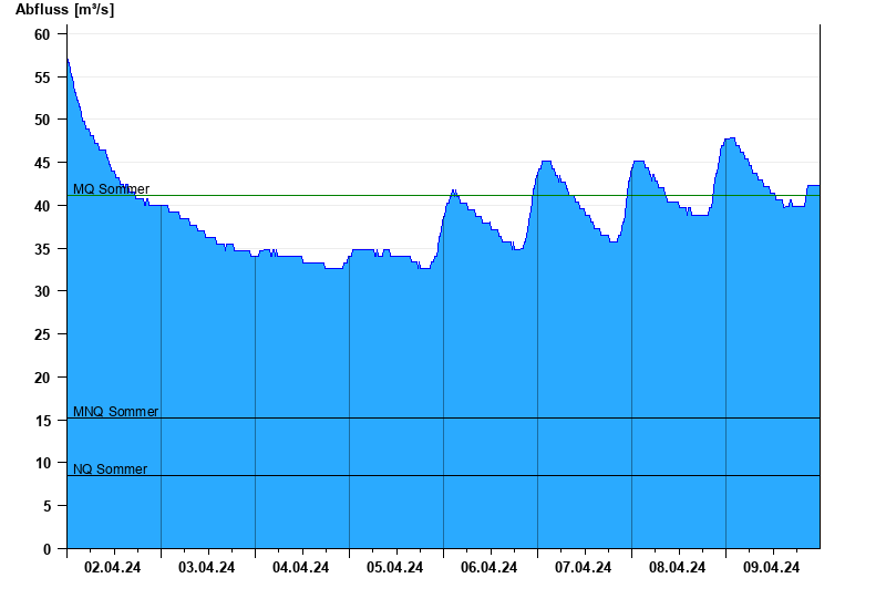 - Mittlerer Niedrigwasserabfluss MNQ 15,2 m³/s