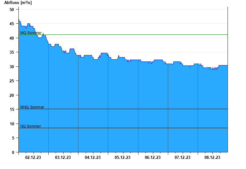 - Mittlerer Niedrigwasserabfluss MNQ 15,2 m³/s