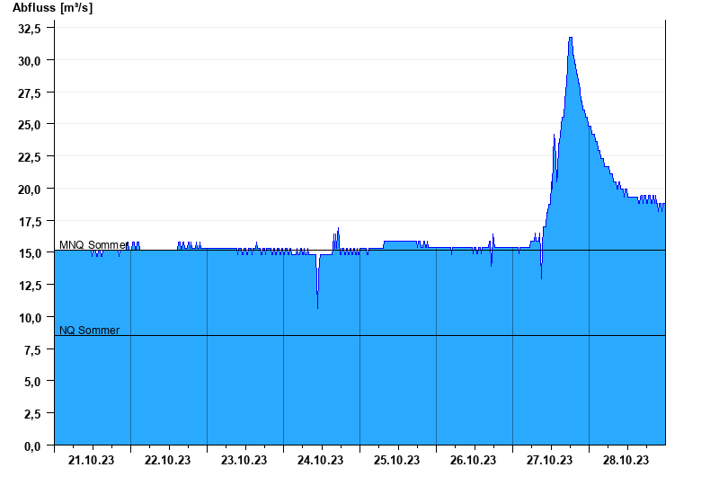 - Mittlerer Niedrigwasserabfluss MNQ 15,2 m³/s