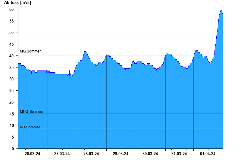 - Mittlerer Niedrigwasserabfluss MNQ 15,2 m³/s
