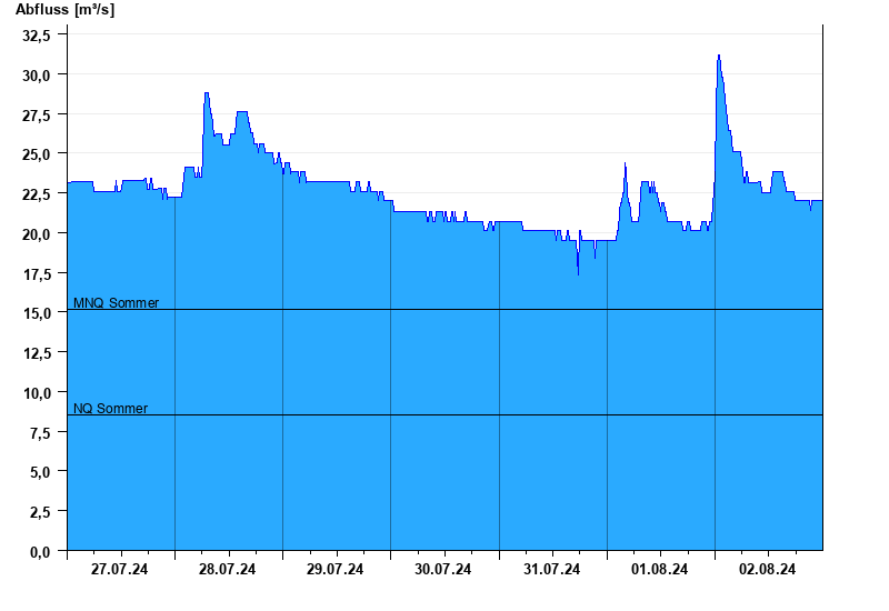 - Mittlerer Niedrigwasserabfluss MNQ 15,2 m³/s