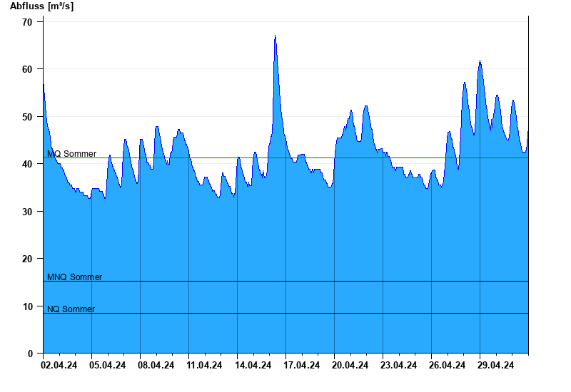 - Mittlerer Niedrigwasserabfluss MNQ 15,2 m³/s