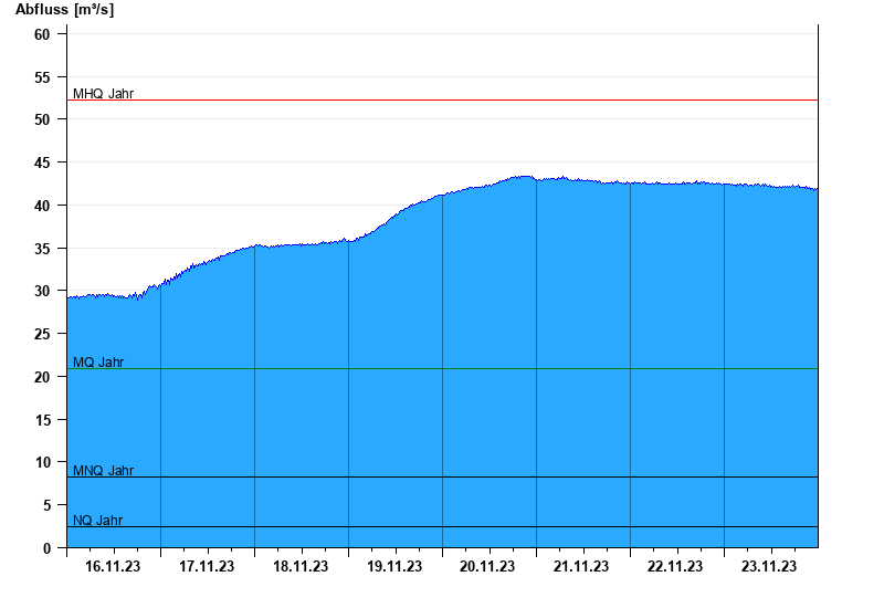 - Mittlerer Niedrigwasserabfluss MNQ 8,32 m³/s