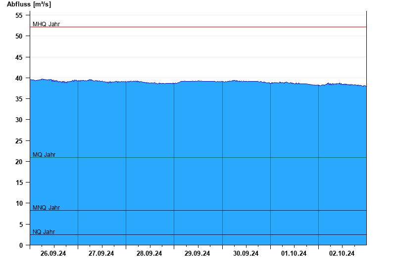 - Mittlerer Niedrigwasserabfluss MNQ 8,32 m³/s