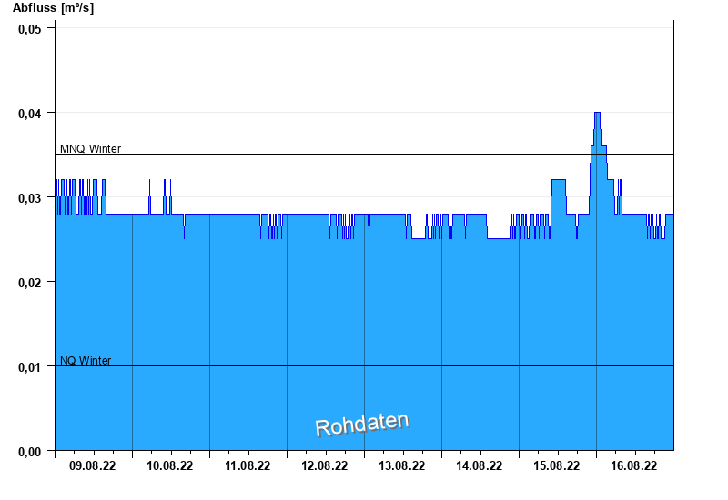 - Mittlerer Niedrigwasserabfluss MNQ 0,035 m³/s
