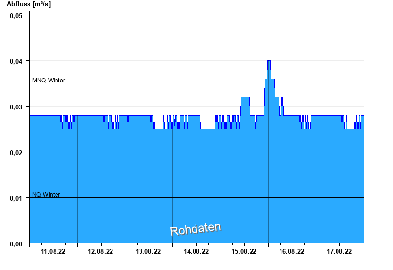 - Mittlerer Niedrigwasserabfluss MNQ 0,035 m³/s