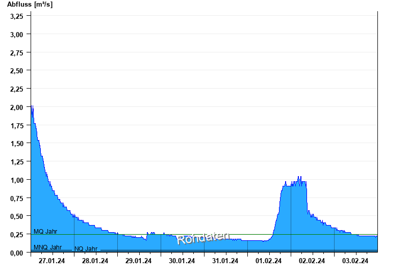 - Mittlerer Niedrigwasserabfluss MNQ 0,026 m³/s