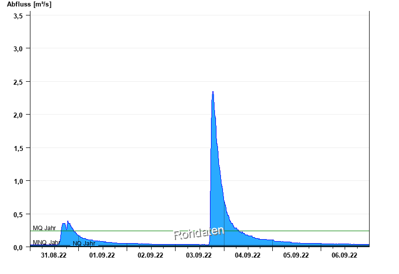- Mittlerer Niedrigwasserabfluss MNQ 0,026 m³/s
