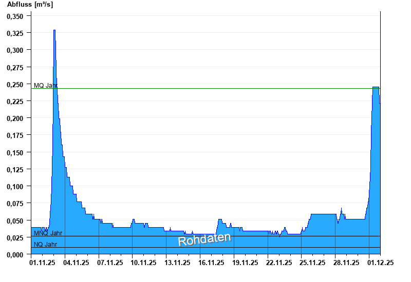- Niedrigwasserabfluss NQ 0,01 m³/s
