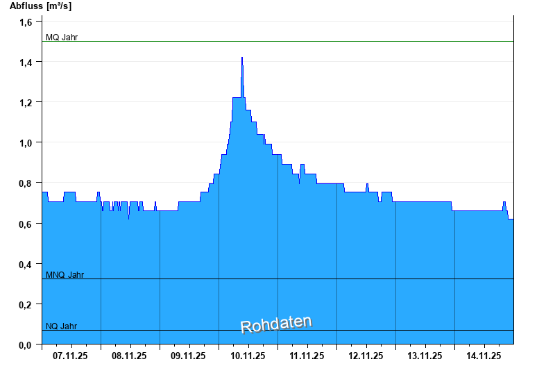 - Mittlerer Niedrigwasserabfluss MNQ 0,325 m³/s