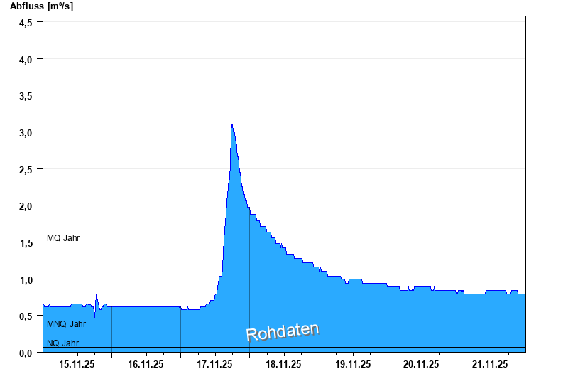 - Mittlerer Niedrigwasserabfluss MNQ 0,325 m³/s