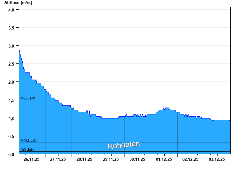 - Mittlerer Niedrigwasserabfluss MNQ 0,325 m³/s
