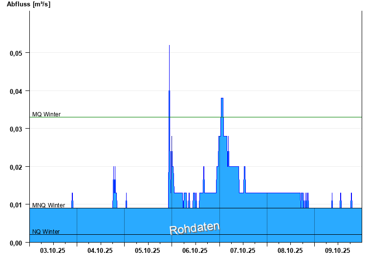 - Mittlerer Niedrigwasserabfluss MNQ 0,009 m³/s