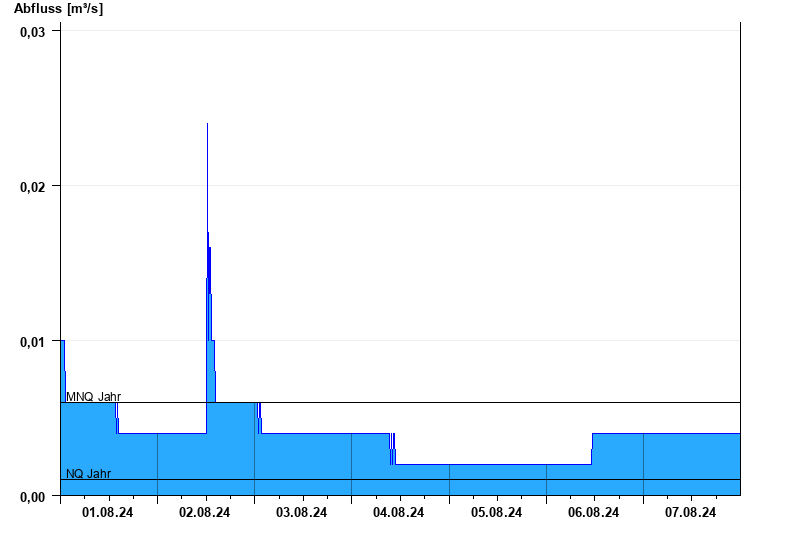- Mittlerer Niedrigwasserabfluss MNQ 0,006 m³/s
