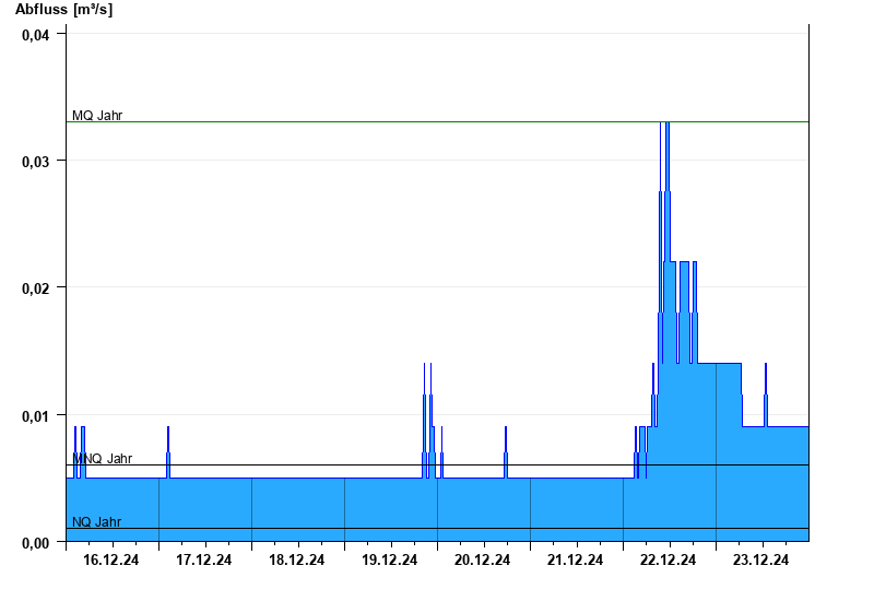 - Mittlerer Niedrigwasserabfluss MNQ 0,006 m³/s