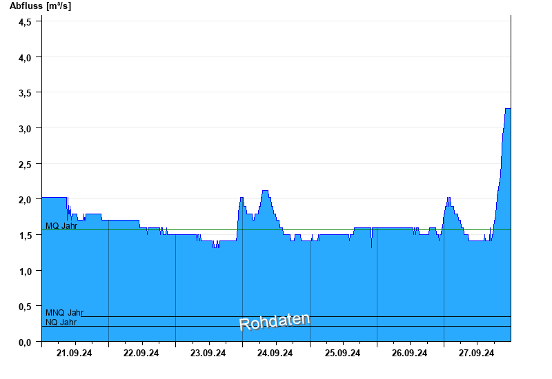 - Mittlerer Niedrigwasserabfluss MNQ 0,345 m³/s