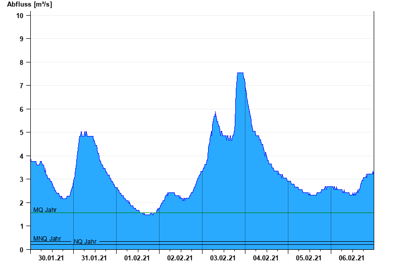 - Mittlerer Niedrigwasserabfluss MNQ 0,345 m³/s