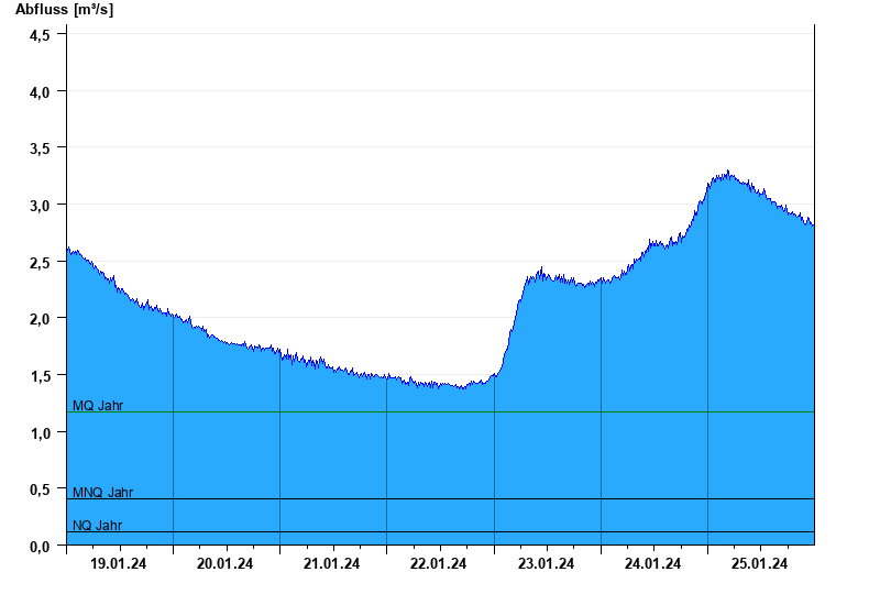 - Mittlerer Niedrigwasserabfluss MNQ 0,407 m³/s