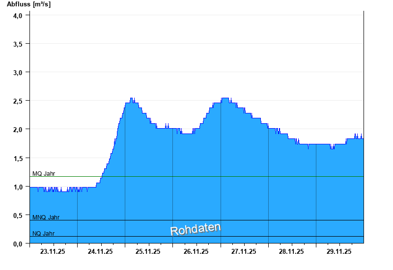 - Mittlerer Niedrigwasserabfluss MNQ 0,407 m³/s