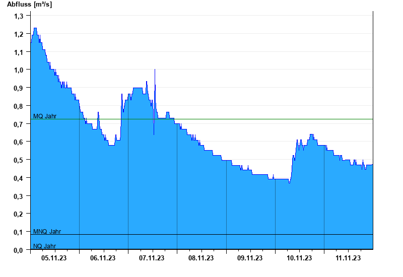 - Mittlerer Niedrigwasserabfluss MNQ 0,085 m³/s