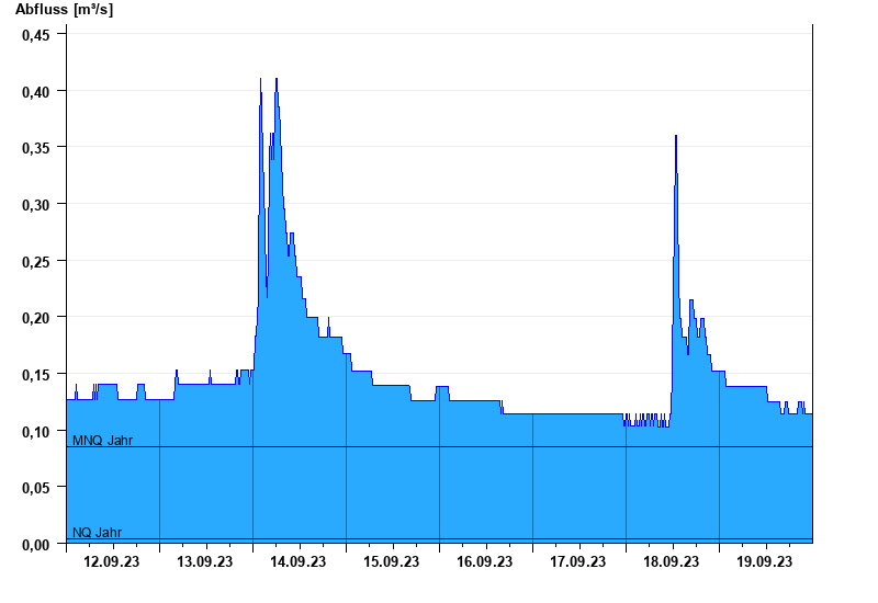 - Mittlerer Niedrigwasserabfluss MNQ 0,085 m³/s