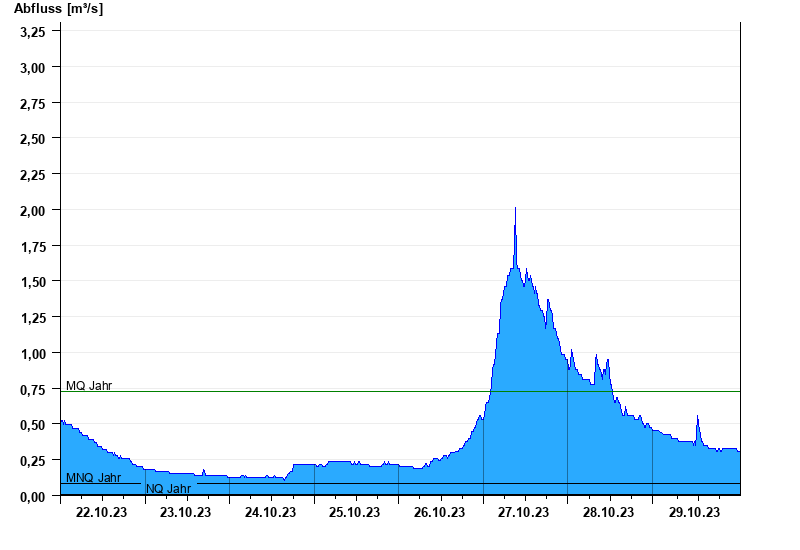 - Mittlerer Niedrigwasserabfluss MNQ 0,085 m³/s