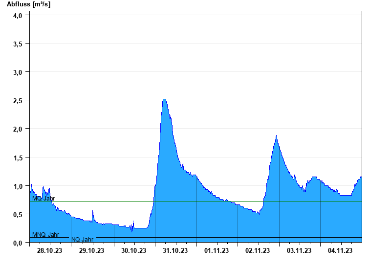 - Mittlerer Niedrigwasserabfluss MNQ 0,085 m³/s