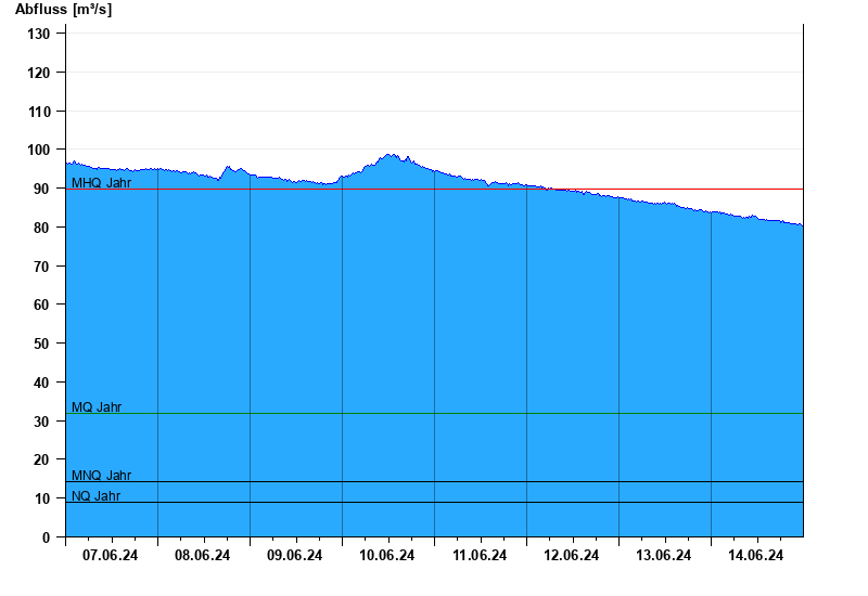 - Mittlerer Niedrigwasserabfluss MNQ 14,3 m³/s