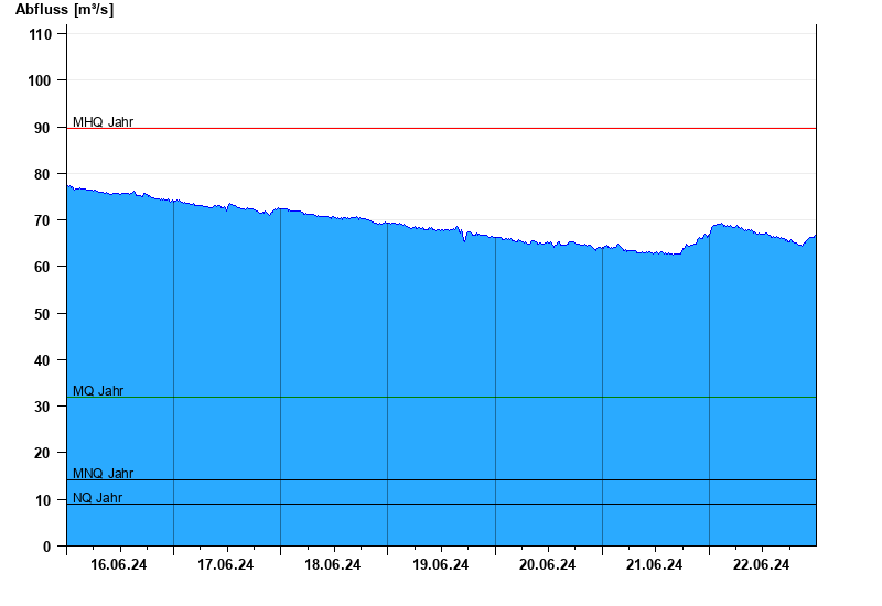 - Mittlerer Niedrigwasserabfluss MNQ 14,3 m³/s