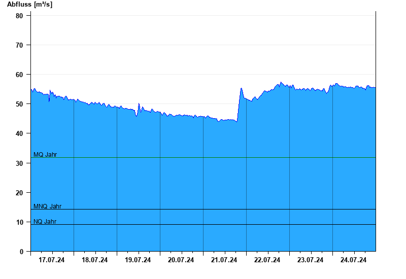 - Mittlerer Niedrigwasserabfluss MNQ 14,3 m³/s