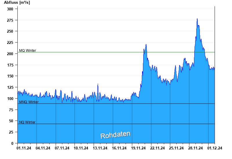 - Mittlerer Niedrigwasserabfluss MNQ 88,2 m³/s