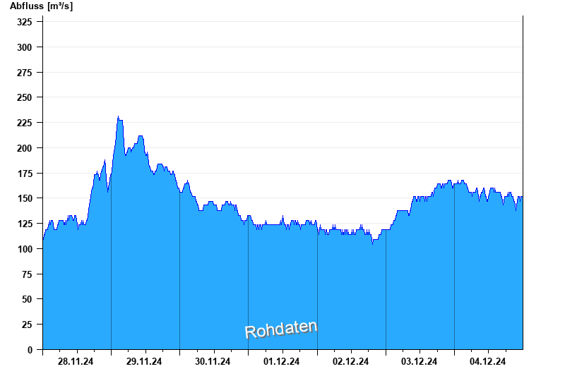 Abflussermittlung bei Niedrigwasser durch Kraftwerksbetrieb (Rückstau) beeinflusst.