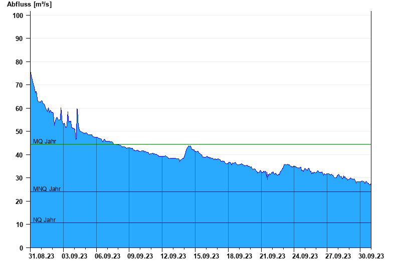 - Mittlerer Niedrigwasserabfluss MNQ 24,1 m³/s
