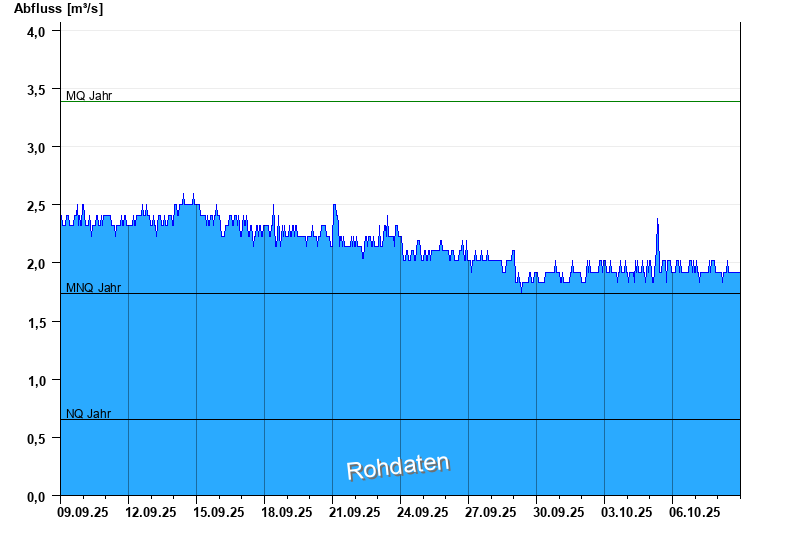 - Mittlerer Niedrigwasserabfluss MNQ 1,74 m³/s