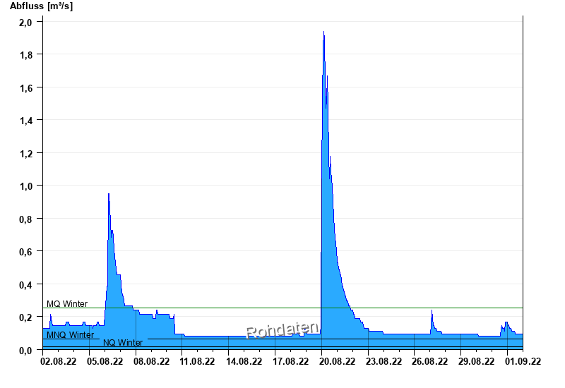 - Mittlerer Niedrigwasserabfluss MNQ 0,065 m³/s