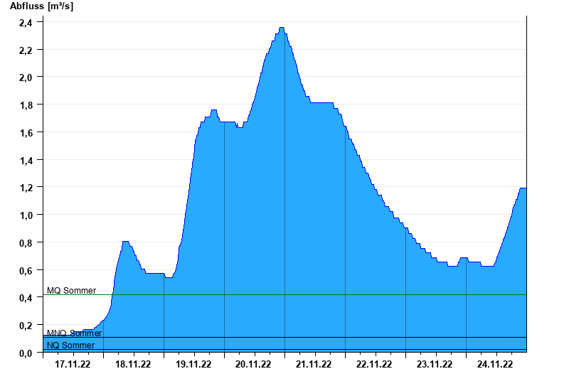 - Mittlerer Niedrigwasserabfluss MNQ 0,106 m³/s