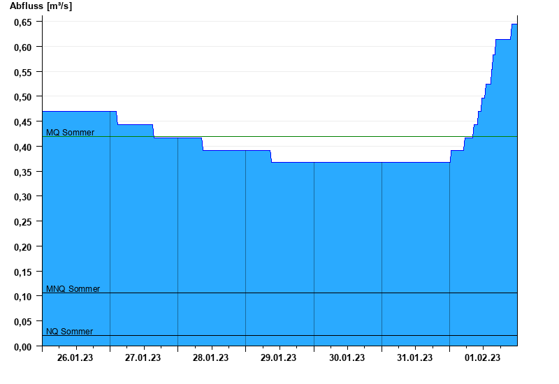 - Mittlerer Niedrigwasserabfluss MNQ 0,106 m³/s