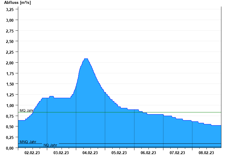 - Mittlerer Niedrigwasserabfluss MNQ 0,099 m³/s