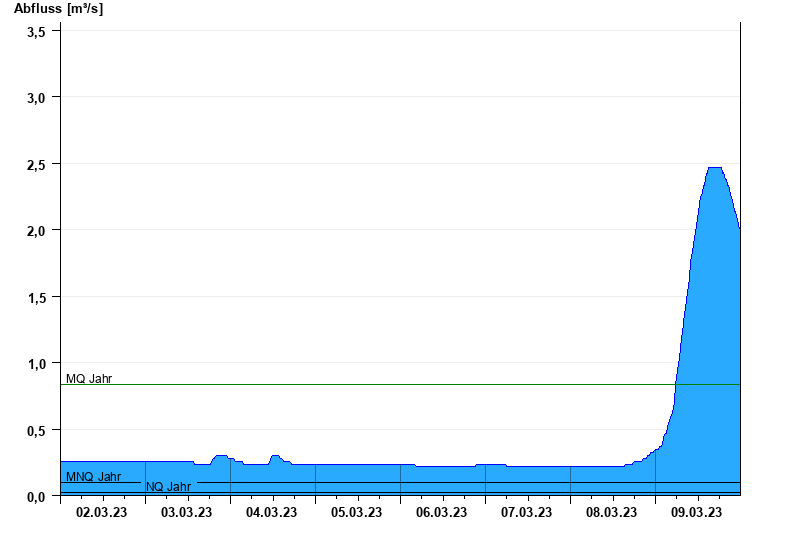- Mittlerer Niedrigwasserabfluss MNQ 0,099 m³/s