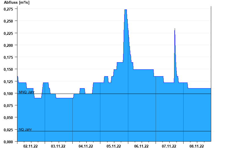 - Mittlerer Niedrigwasserabfluss MNQ 0,099 m³/s
