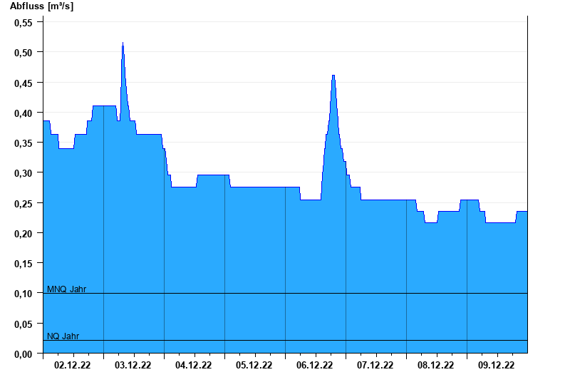 - Mittlerer Niedrigwasserabfluss MNQ 0,099 m³/s