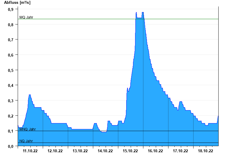 - Mittlerer Niedrigwasserabfluss MNQ 0,099 m³/s