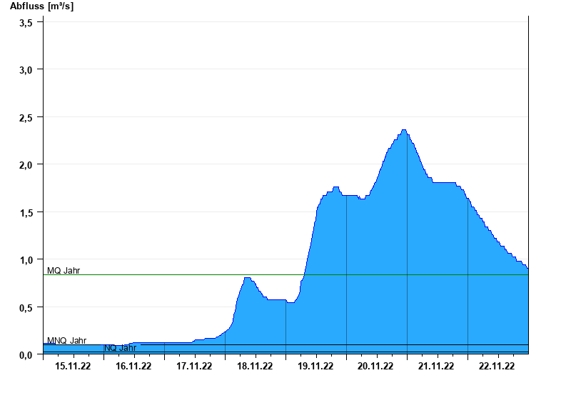 - Mittlerer Niedrigwasserabfluss MNQ 0,099 m³/s