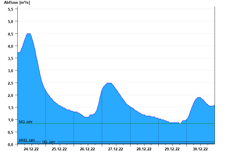 - Mittlerer Niedrigwasserabfluss MNQ 0,099 m³/s