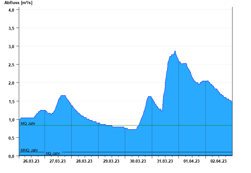 - Mittlerer Niedrigwasserabfluss MNQ 0,099 m³/s