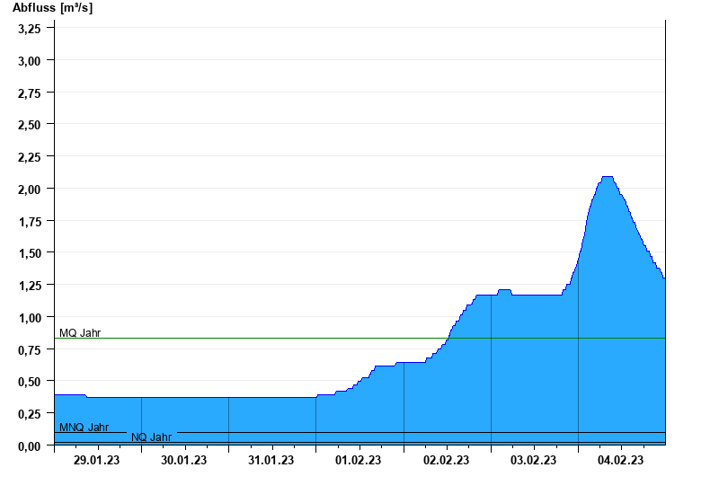 - Mittlerer Niedrigwasserabfluss MNQ 0,099 m³/s